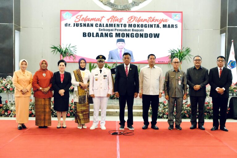 MANADO- Gubernur Sulawesi Utara Olly Dondo Kambey secara resmi melantik dr.Jusnan Calamento Mokoginta MARS, sebagai Penjabat (PJ) Bupati kabupaten Bolaang Mogondow (Bolmong) Provinsi Sulawesi Utara (Sulut) Rabu 22 Mei tahun 2024 siang tadi.