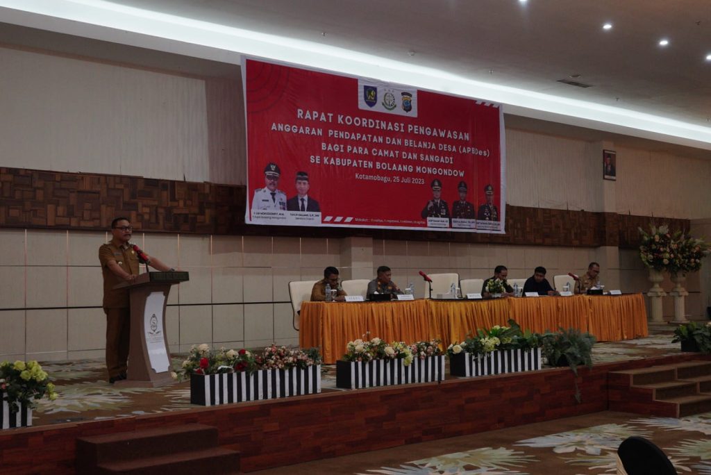 Diky Panghendaheng, SSos., Kapolres Kotamobagu yang diwakili Kasat Reskrim IPTU Ahmad Anugerah Ari Pratama, STRK SIK, Asisten I Deker Rompas, Inspektur Daerah Rio Lombone SSTP MH CGCAE, Kadis PMD Abdus Salam Bonde, SHI MAP, Dan seluruh Sangadi serta Camat se-Kabupaten Bolmong. (ADVERTORIAL)