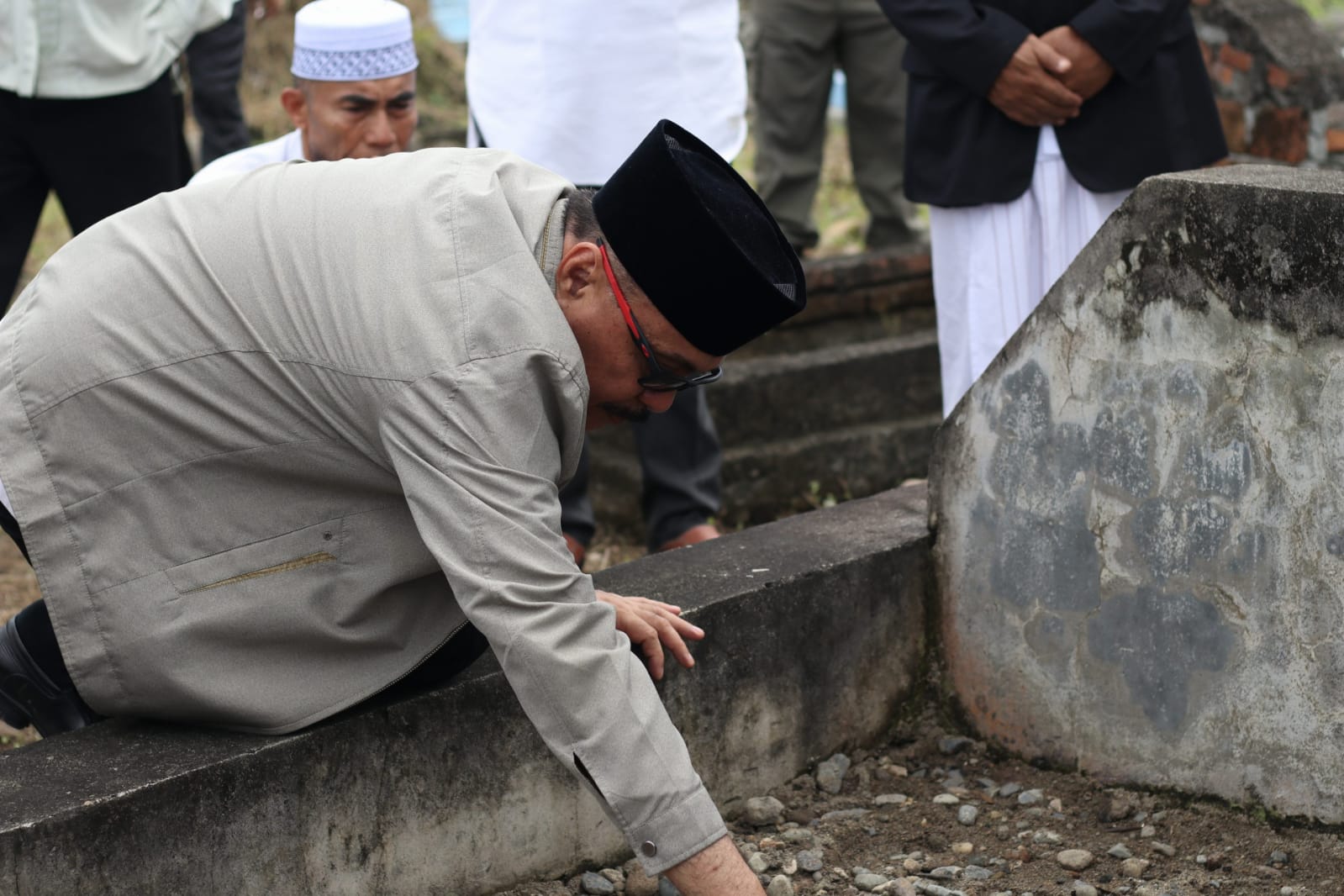 Bupati juga turut menyaksikan penyembelian hewan kurban, dan menyisikan waktu melakukan ziarah ke makam leluhur serta keluarganya yan yang