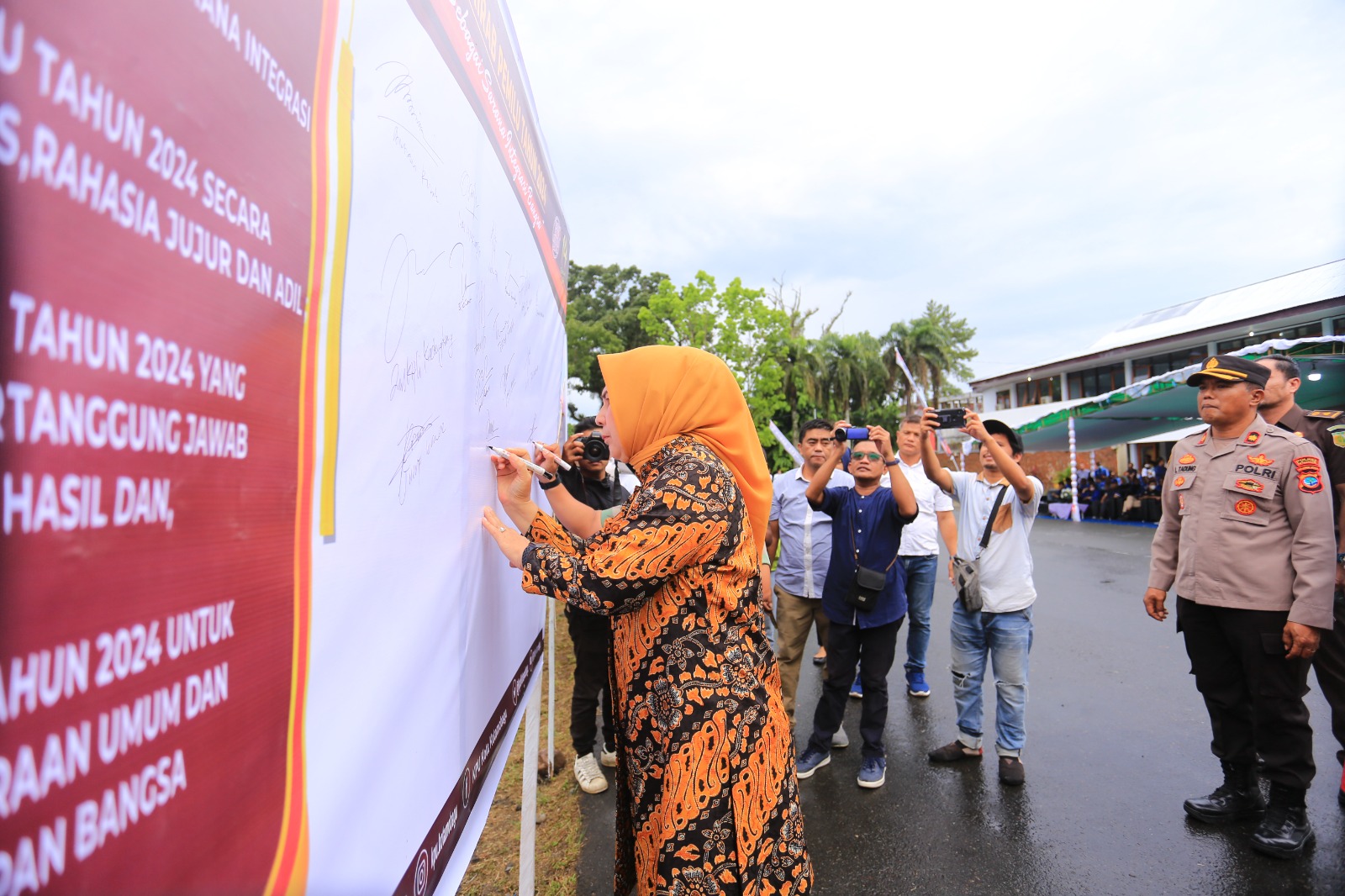 Wali Kota dalam sambutannya menyampaikan bahwa, Pemilu merupakan sarana integrasi bangsa yang harus dilaksanakan dengan Jujur, Adil, Langsung, Umum, Bebas dan Rahasia.