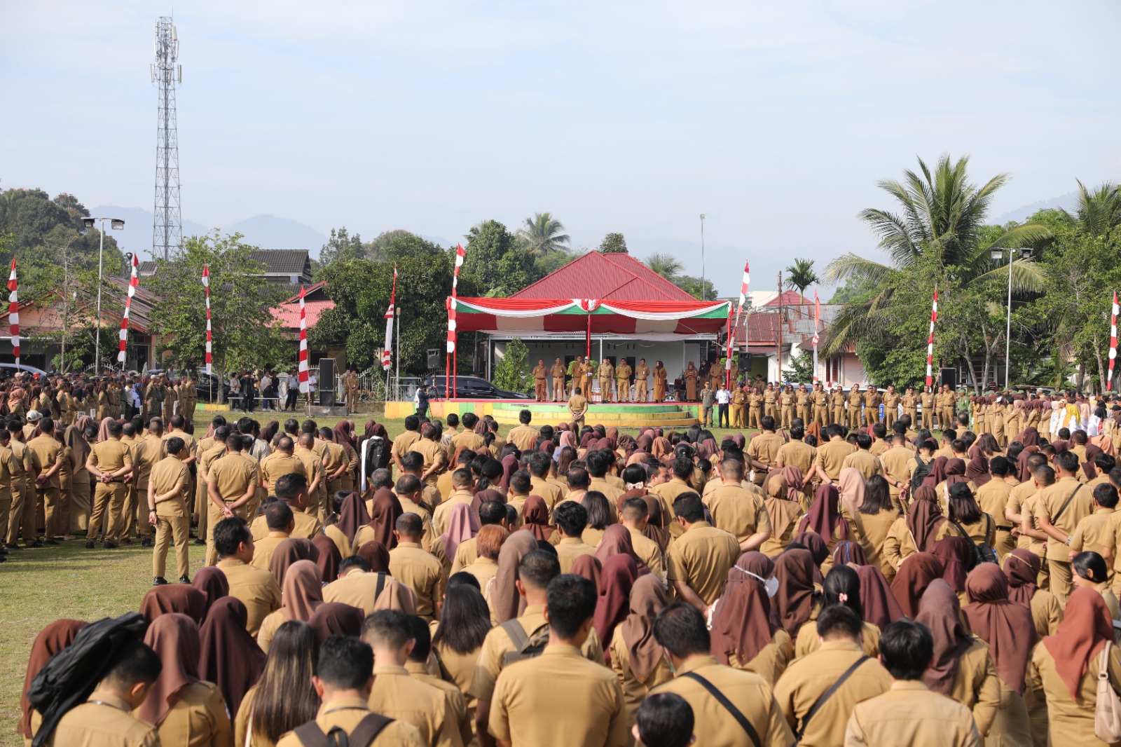Apel Kerja Perdana Wali Kota Kotamobagu bersama seluruh Aparatur Pemerintah Daerah Kota kotamobagu yang dilaksanakan di Lapangan Olahraga Kelurahan Molinow Kecamatan Kotamobagu Barat tersebut, dihadiri Sekretaris Daerah Kotamobagu, Sofyan Mokoginta, S.H., M.E, para Asisten, para pimpinan Organisasi Perangkat Daerah, Camat, Lurah dan Sangadi, beserta seluruh Perangkat Desa dan Kelurahan, ASN dan THL dilingkungan Pemerintah Daerah Kota Kotamobagu. (*)