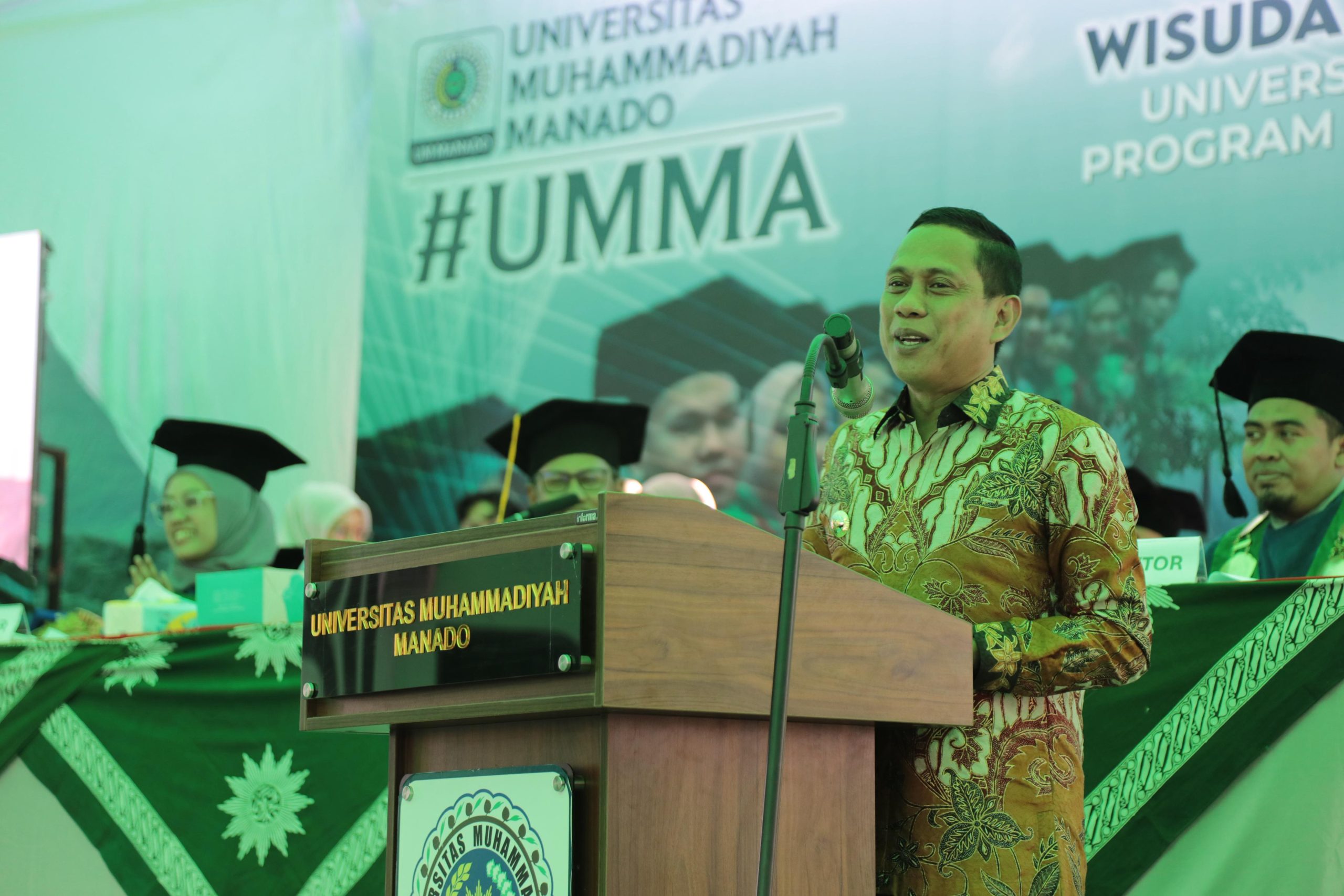 Dalam kesempatan tersebut pada sambutannya wali kota menyampaikan Atas nama pribadi dan atas nama jajaran Pemerintah Daerah Kota Kotamobagu ingin menyampaikan ucapan selamat dan sukses kepada Wisudawan dan Wisudawati, yang siang hari ini, baru saja mengikuti prosesi Wisuda Periode VII Tahun 2025, Program Sarjana, Diploma, dan Profesi pada Universitas Muhammadiyah Manado.