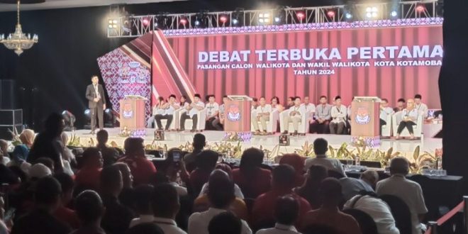 Debat yang diselenggarakan KPU Kotamobagu tersebut digelar di Ballroom Hotel Sutan Raja Kotamobagu, Sabtu (19/10).
