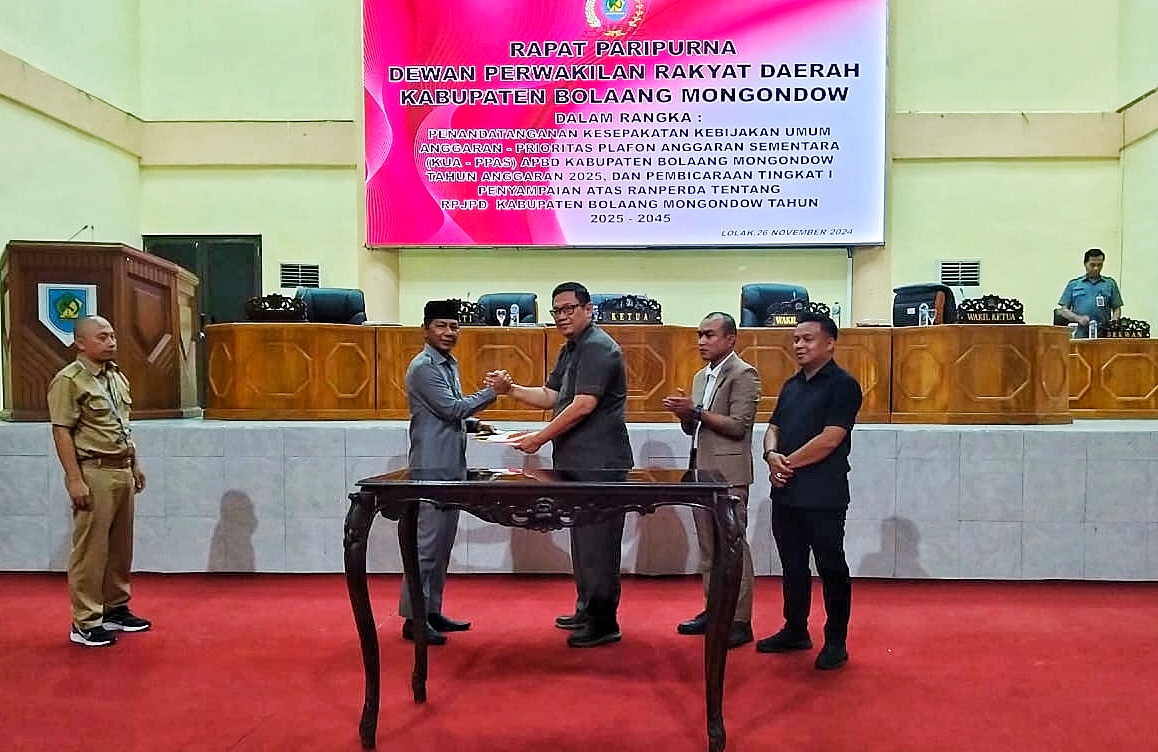 Dengan telah disetujuinya KUA-PPAS Bolmong tahun 2025, maka rapat diakhiri dengan penandatanganan nota kesepakatan antara pemerintah daerah dalam hal ini penjabat Bupati dengan ketiga pimpinan DPRD. Usai ditandatangani, dilanjutkan dengan penyerahan dokumen nota kesepakatan oleh Ketua DPRD kepada penjabat Bupati Bolmong. (Advertorial)