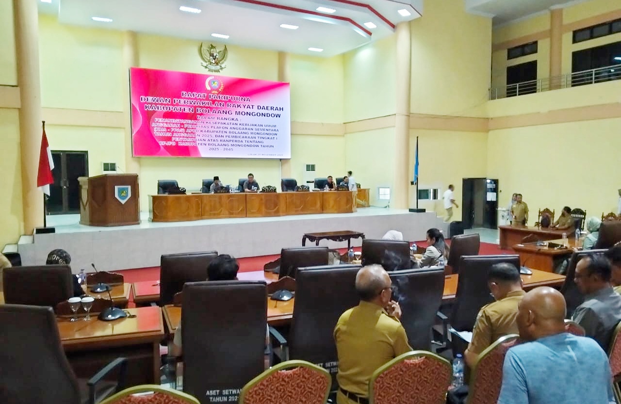 BOLMONG POST- Dewan Perwakilan Rakyat Daerah (DPRD) Kabupaten Bolaang Mongondow (Bolmong) menggelar Rapat Paripurna dengan agenda Penandatanganan Nota Kesepakatan Kebijakan Umum Perubahan Anggaran (KUPA) dan Prioritas Plafon Anggaran Sementara (PPAS) Kabupaten Bolmong Tahun 2025.
