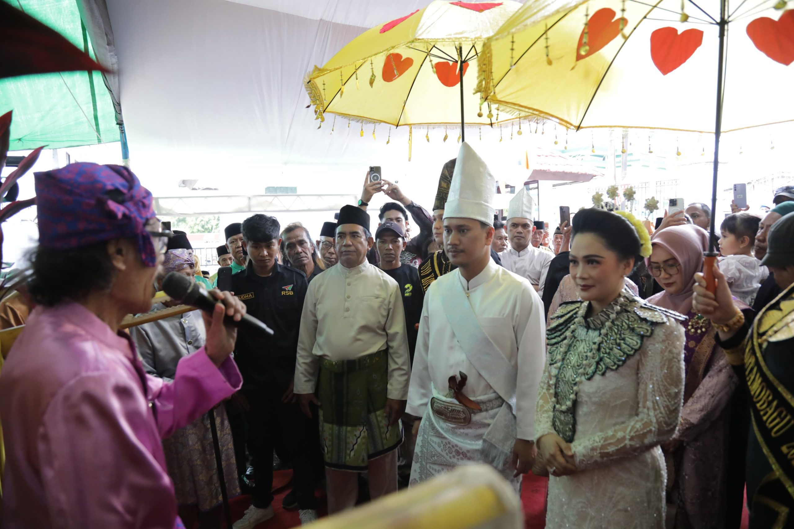 Setelah tiba di halaman Komalig, Wakil Wali Kota Kotamobagu, Rendy Virgiawan Mangkat, dan Sekertaris TP PKK Kota Kotamobagu., Ny. Resty. A. Mangkat Somba, menerima jemputan adat berupa Tari Tuitan dan Itum – itum dari para Tua Adat.
