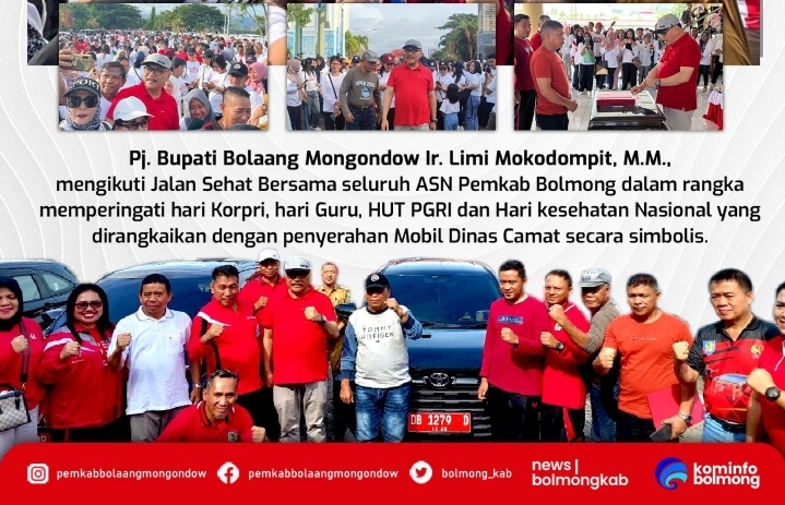 BOLMONG POST –Pemerintah Kabupaten (Pemkab) Bolmong menggelar jalan sehat untuk memperingati HUT ke-52 Korpri, HUT ke-78 PGRI, dan Hari Kesehatan Nasional ke-59. Jalan sehat …