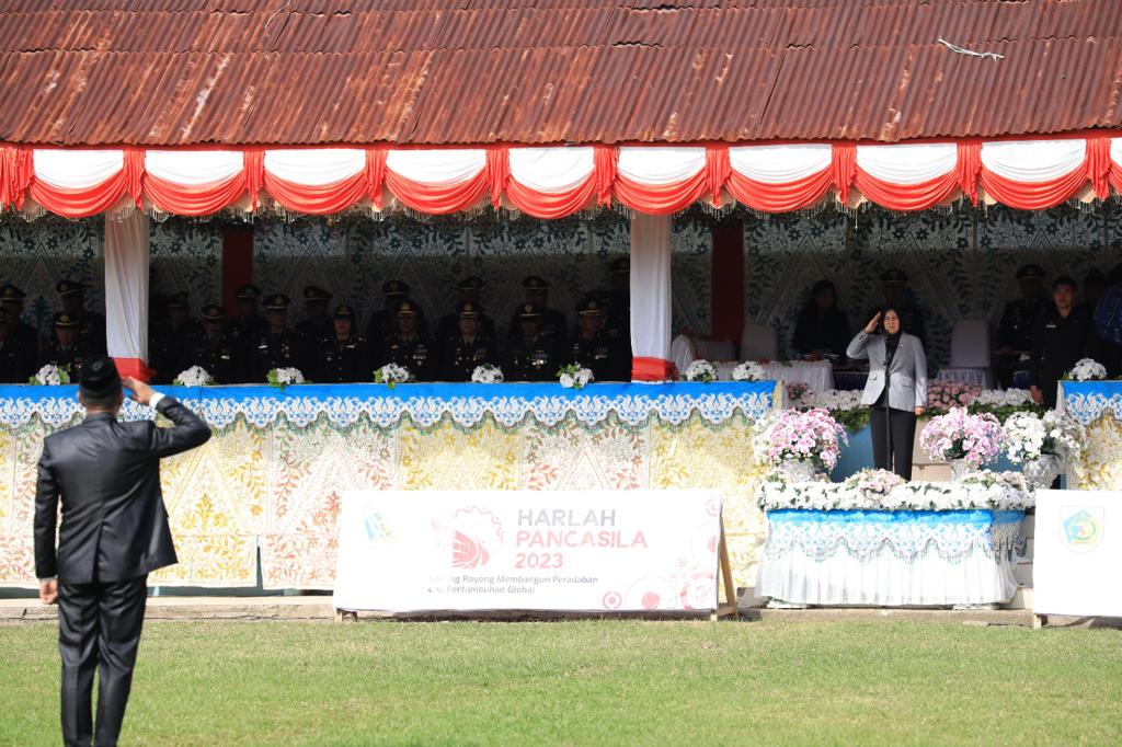 KOTAMOBAGU—Wali Kota Kotamobagu, Ir. Hj. Tatong Bara bertindak sebagai Inspektur Upacara (Irup) pada pelaksanaan Upacara peringatan Hari Lahir Pancasila Tahun 2023, Kamis (1/6). Wali …