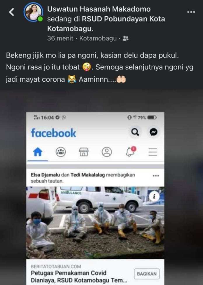 Selengkapnya »Kotamobagu- Pemilik Akun Facebook atas nama Uswatun Hasanah Makadomo diadukan ke Kepolisian Resor (Polres) Kotamobagu terkait dugaan ujaran kebencian melalui sosial media (Sosmed) Facebook, …